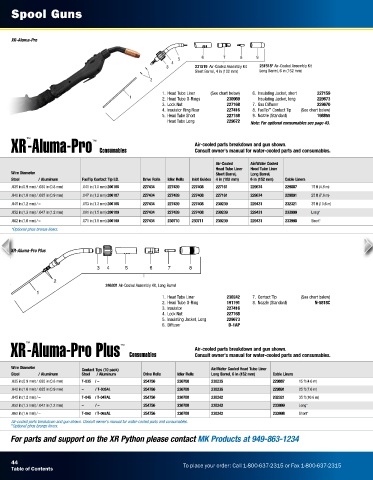 XR-Aluma-Pro ™ Consumables Air-cooled parts breakdown and gun shown.