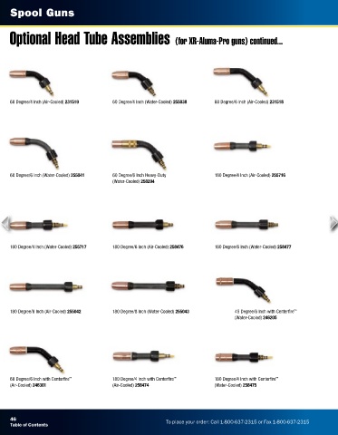180 Degree/8 Inch (Air-Cooled) 255042 180 Degree/8 Inch (Water-Cooled) 255043 45 Degree/6 Inch with Centerfire